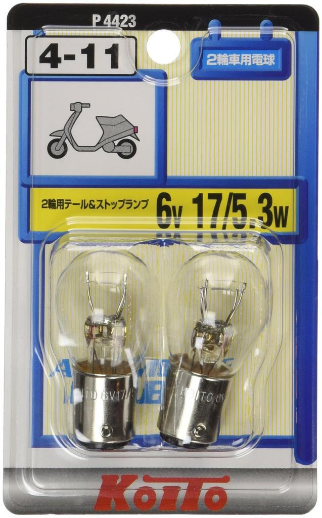 ![KOITO Tail & Stop Bulb 6V17/5.3W (2 pieces) [Model Number] P4423 Light Bulb](https://img.joomcdn.net/d8e006cde28e5166b4d218b4d9b8ff5b3a2549e9_637_1024.jpeg)