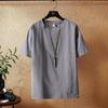 Men's Cotton-Linen Retro Loose Fit Short-Sleeve T-Shirt - Solid Color, Large Size, Round Neck — koupit online v obchodě na marketplace Joom