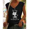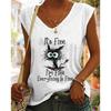 2024 V-Neck Cap Sleeve Black Cat Print Loose Vest