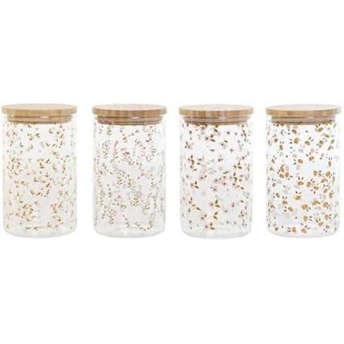 Bocal - DKD HOME DECOR - Lot de 4 en bambou et verre Borosilicate - 1L - 10x10x17 cm - Multicolore — koupit zboží online s dopravou zdarma po celém světě!