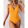 Jednobarevné řasené plavky s výstřihem do V 2025 Dámské jednodílné jednobarevné plavky Plážové oblečení Léto Žena Plavkyně Plavání Plavky Monokiny — koupit online v obchodě na marketplace Joom