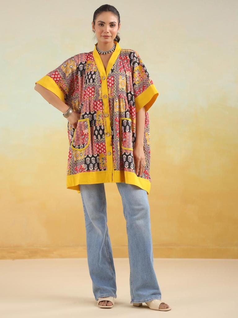 Hand block printed cotton top tunic kaftan handPrinted cotton w/pockets tunic loose fitting free size tunic RedYellow Kaftan Limited edition — koupit online v obchodě na marketplace Joom