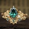 1 Pc Golden Color Teardrop Cut Green Champagne Stone Ring Wedding Band Valentine's Day Jewelry — koupit online v obchodě na marketplace Joom