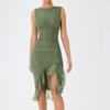 Evropské a americké dámské letní volánový lem temperamentní slim fit jednobarevné šaty bez rukávů bez zad