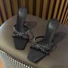 Rhinestone cross with sandals women's summer 25 new leaf chain high heels square head horseshoe heel one word with cool slippers