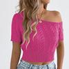 Dámský volný ležérní jednobarevný top s odhalenými rameny, dutý, s krátkým rukávem, pletený — koupit online v obchodě na marketplace Joom