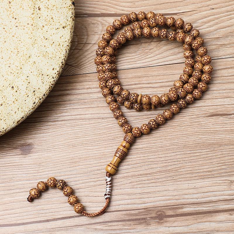 Ručně vyráběný 99-korálkový růženec Tasbih s imitací dřevěné kresby ze Saúdské Arábie