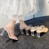 Průhledné krásné pantofle na vysokém podpatku dámské letní nošení křišťálové sandály na silném podpatku poloviční nazouváky temperament společenský sandály