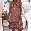 Summer Women's V-Neck Small Floral Printed Sleeveless Dresses