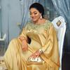 African Lace Plus-Size Robe Dress with Trumpet Sleeves and Headscarf