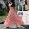 Sukně midi z šifonu v korejském stylu jaro léto pro ženy s vysokým pasem v kontrastní barvě modro-růžová květinová sukně vrstvené volány sladké sukně dámské