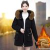 Dámský zimní sametový kabát 2024: Slim Fit, Korejský styl, Kožešinový límec, Teplý, Velká velikost, Středně dlouhý.