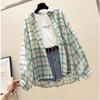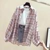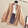 Jaro Léto Dámská Vintage Halenka s Dlouhým Rukávem Volná Kostkovaná Halenka Topy Dámské Šifonové Ležérní Košile Košile na Ochranu před Sluncem
