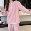2025 Women's Pajamas Two-piece Suit Autumn and Winter Coral Velvet Solid Color Plus Velvet Thickening Sweet Flannel Warm Home Set