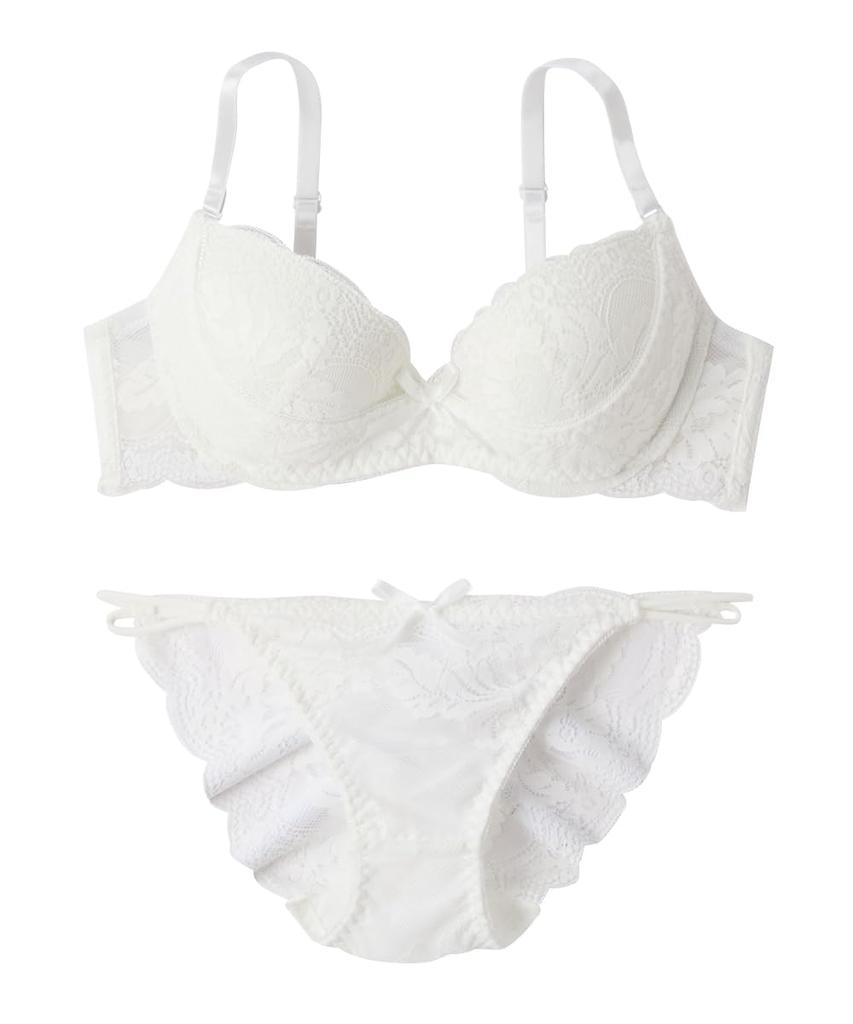 Underbelt Design Lace Bra and Shorts [Nissen] Set, Off-White, G80/L