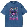 Magic Cartoon Animal Print Women Wash T-Shirt Unisex Oversized Cotton Couple Half Sleeve High Street Pop Top Teen Tees