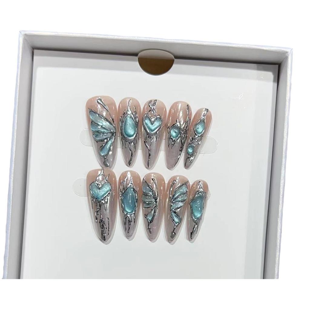 Hand-painted Armor Hand-painted Tibetan Silver Sapphire Textured Manicure Fake Nail Patch Can Be Detached — koupit online v obchodě na marketplace Joom