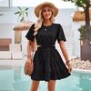 Women Summer Casual A-Line High Waist Short Sleeve Dress Solid Color O-Neck Above Knee Dresses Spring S-XL