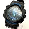 Casio G-Shock GA-100FL-1AJF is a men's watch that combines analog and digital elements. It features Japanese quartz movement of the 5081 calibre. The round resin case is 51.2 mm in diameter and 16.9 mm in thickness. The blue LCD dial provides clear reading of time. The watch is protected by mineral glass and comes with a resin band in black color. It has a water resistance of 200 meters, making it suitable for various activities.