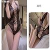 Lace neck onesie perspective waist tight sexy underwear women's temptation empty love set 658