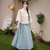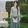 Spring/Autumn Retro Chinese Embroidered Tang Suit: Stand-up Collar, Tie-up Han Element, Improved Hanfu Two-Piece Tea Set