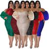 Solid Colour Evening Dress Sequins Strapless Sexy Elegant Mid-waist Women's Dress — koupit online v obchodě na marketplace Joom