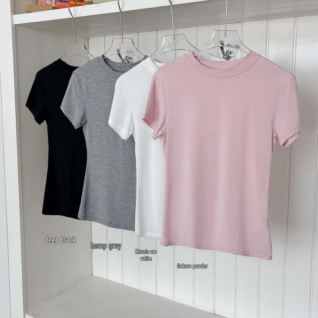Modal Short Sleeve Crew Neck Women's Slimming Versatile T-Shirt - Nude Feeling, Straight Shoulder, Comfortable Fit
