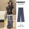Petite Blue Plaid Loose Straight-Leg Pants - Zhao Lusi Style for Women, Spring/Autumn, 145cm