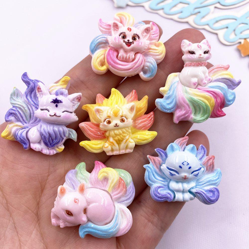 8KS Pryskyřice Roztomilá Barevná Kreslená Figurka Sedmiocasé Lišky Flatback Kámen Zvířata Scrapbook DIY Šperky Dekor Řemeslné Doplňky — koupit online v obchodě na marketplace Joom