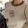 New Autumn Winter Fashion Korean Edition Contrast Round Neck Bottom Sweater Loose and Versatile Western Women's Knitted Top