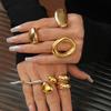 Fashion Gold Color Smooth Geometric Open Rings Set For Women Exaggerated Metal Irregular Thick Chunky Ring Punk Jewelry