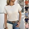 2025 Fashion Women's Blouses New Summer Casual Solid Colors Round Neck Hollow Out Lace Spliced Short-Sleeved Shirt Top For Women — koupit online v obchodě na marketplace Joom