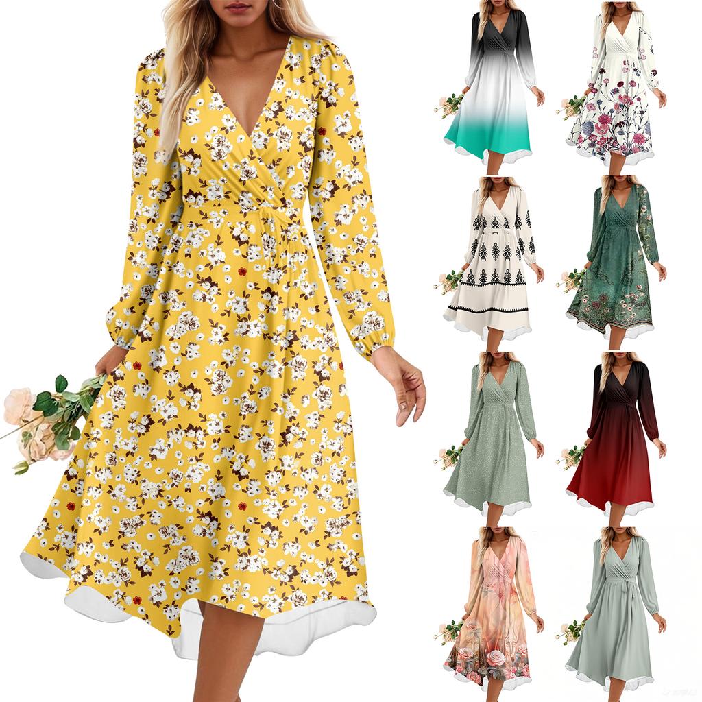 Dámské letní volné šaty s výstřihem do V, Elegantní šaty — koupit online v obchodě na marketplace Joom