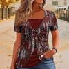 Elegant Square Neck Women's Short Sleeve T-Shirt Ethnic Leopard Print False Two-Piece Top Fashion Streetwear — koupit online v obchodě na marketplace Joom