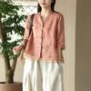 New retro cotton and linen shirt women's literary cardigan embroidered shirt temperament splicing design sense thin top