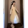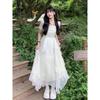 Gentle and sweet wind yellow floral suspender dress unique and beautiful temperament waist a word long dress summer