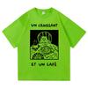 Vintage French Cafe Cat T Shirt Fashion Men/Women Funny Letter Un Croissant Et Un Cafe T-Shirt High Quality Cotton Tees Shirts