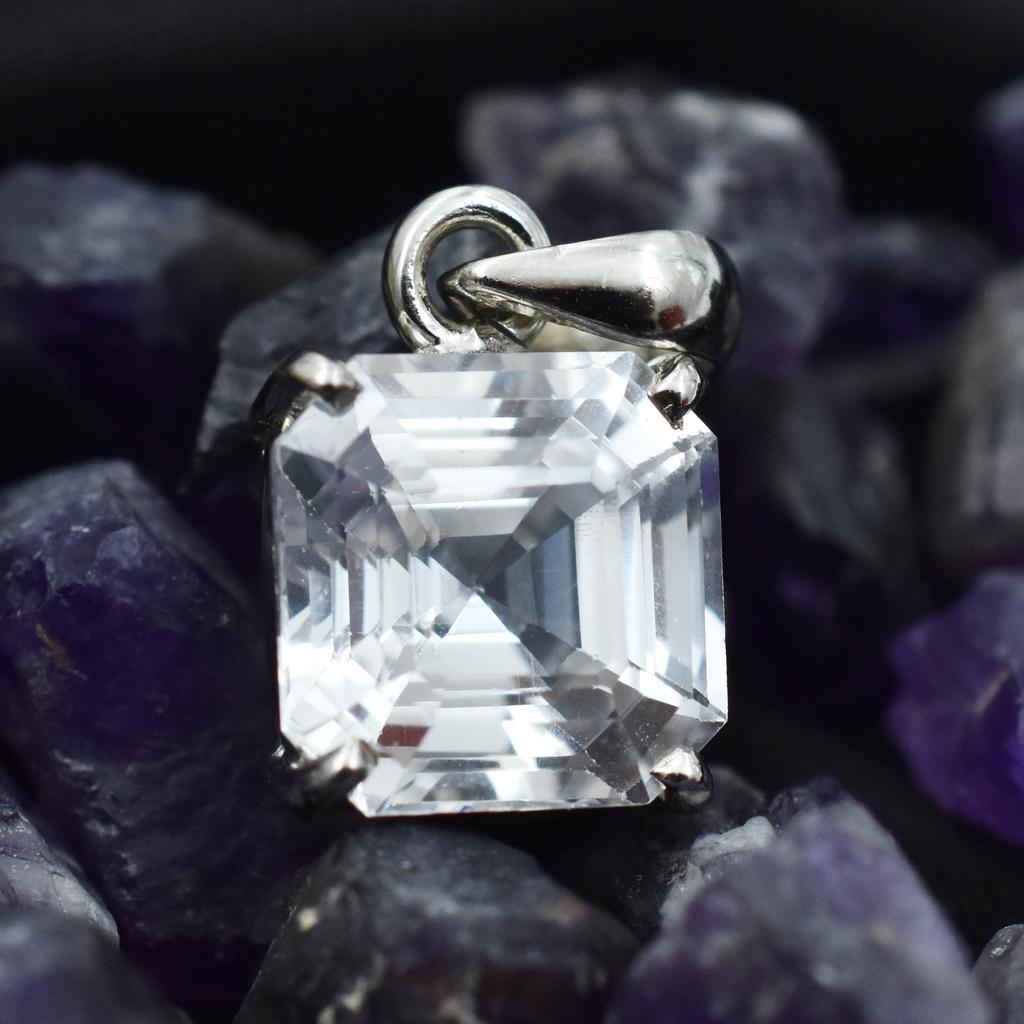 Sapphire 25 Ct Silver White Square Cut Natural Pendant Loose Gemstone CERTIFIED AR-3645-Sa