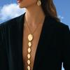 1 pár oválných náušnic pecek, dlouhý náhrdelník ve tvaru Y, řetízek na svetr, retro evropské, americké módní přeshraniční trendové doplňky