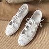 Hollow carved ballet single shoes women's Brock flat casual small leather shoes white straps Mary Jane shoes