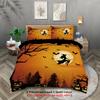 3 péřové povlaky na přikrývky s potiskem černá kočka, dýně, netopýr (1 povlak na peřinu+2 povlaky na polštáře, bez výplně) Halloweenská ložní souprava