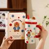 Large Capacity Cartoon Straw Cup with Lid Cute Mug High value Kitten Animal Ceramic Cup Set Gift