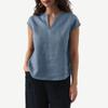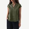 Women's Fashion Casual Cotton Linen V-Neck Cover Sleeve Solid Color Shirt T-Shirt Top