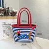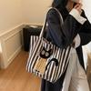 A stylish and casual striped tote bag featuring a cute and fun dachshund embroidery pattern, durable bag has a nylon lining, suitable for charming