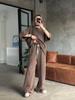 Dámský dvoudílný outfit Oversized pulovr s 3/4 rukávem a široké kalhoty Set Podzimní ležérní volná souprava pro volný čas — koupit online v obchodě na marketplace Joom