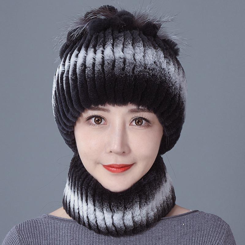 New Rex rabbit fur wool hat women's autumn and winter warm scarf fashion thickened ear protection flower suit tide — koupit online v obchodě na marketplace Joom