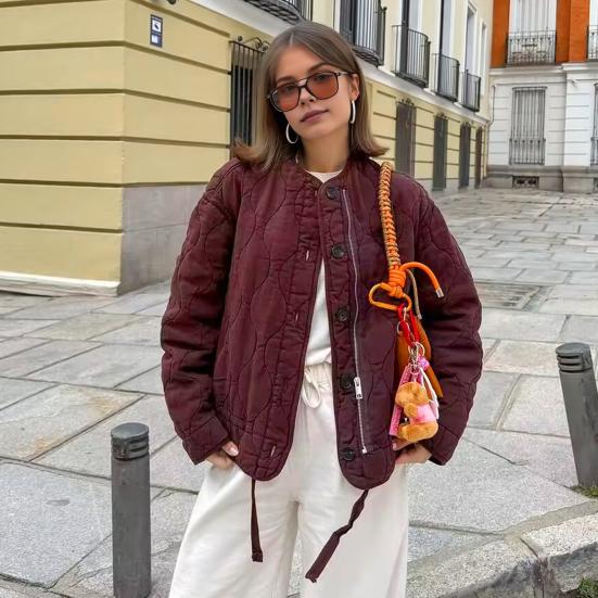 Dámský kabát kulatý výstřih dlouhý rukáv jednobarevná bunda s kapsami všestranný styl zesílený — koupit online v obchodě na marketplace Joom