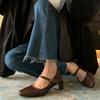 Vintage boty Mary Jane malé kožené dámské 2025 dámské podzimní nové všestranné lodičky silný podpatek čtvercová špička suchý zip vysoké podpatky