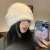 Big head circumference loose round face suitable wool hat women's winter warm face small knitted hat