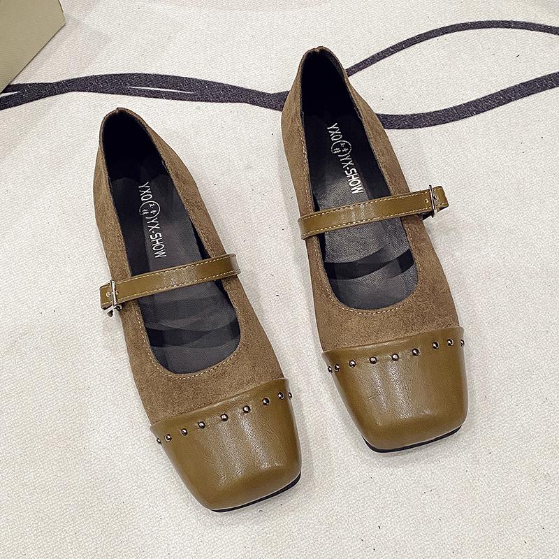 Fashion Women's Fashion Flat Shoes Square Head Shallow Mouth Splicing Suede Rivet Soft Sole Anti-slip Wear-resistant Single Shoes — koupit online v obchodě na marketplace Joom